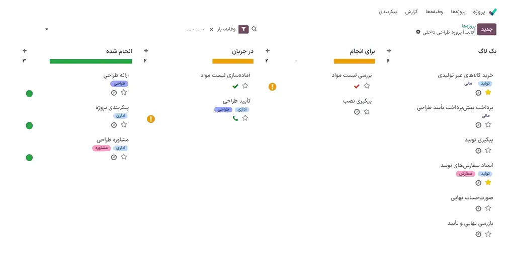 کارآفیس بهترین ابزار برای اجرای این هنر است. با استفاده از کارآفیس میتوانید به راحتی وظایف را ایجاد کرده، زمانبندی کنید و پیگیری کنید. تمام اطلاعات و سوابق مربوط به پروژه، از جمله زمانبندیها، سفارشهای خرید و سایر مستندات، در یک داشبورد متمرکز قابل دسترسی هستند، که مدیریت پروژهها را بسیار سادهتر و کارآمدتر میکند. با این ابزار، هیچچیز از نظر شما پنهان نمیماند و میتوانید بهصورت لحظهای روند پیشرفت پروژه را تحت کنترل داشته باشید.
